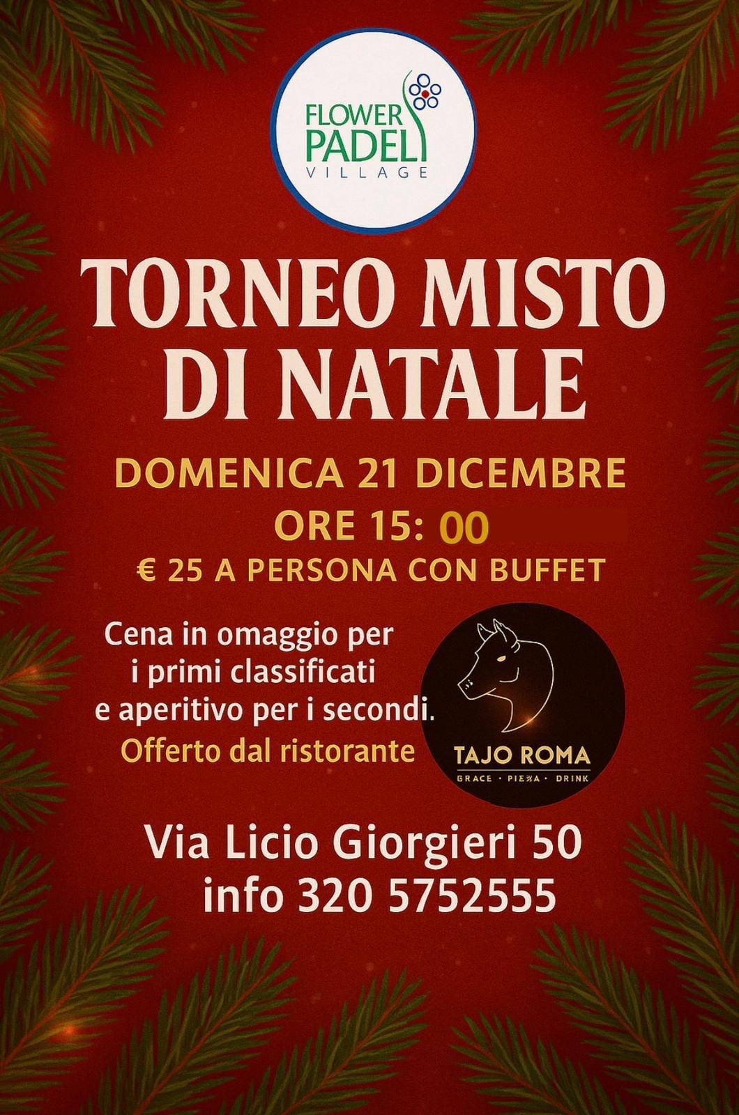 Domenica 21 dicembre a partire dalle ore 15 si svolgerà il toneo misto di Natale.